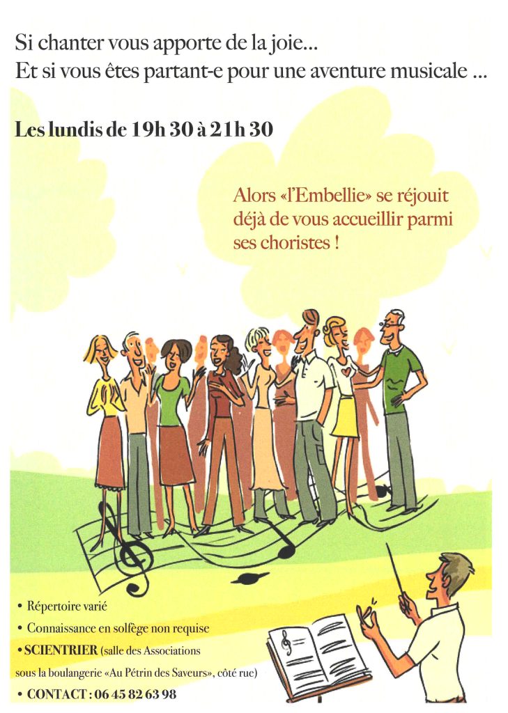 La Chorale de Scientrier anciennement « Les Décibels » a été rebaptisée « l’Embellie » après une suspension d’activité pendant la période du COVID.